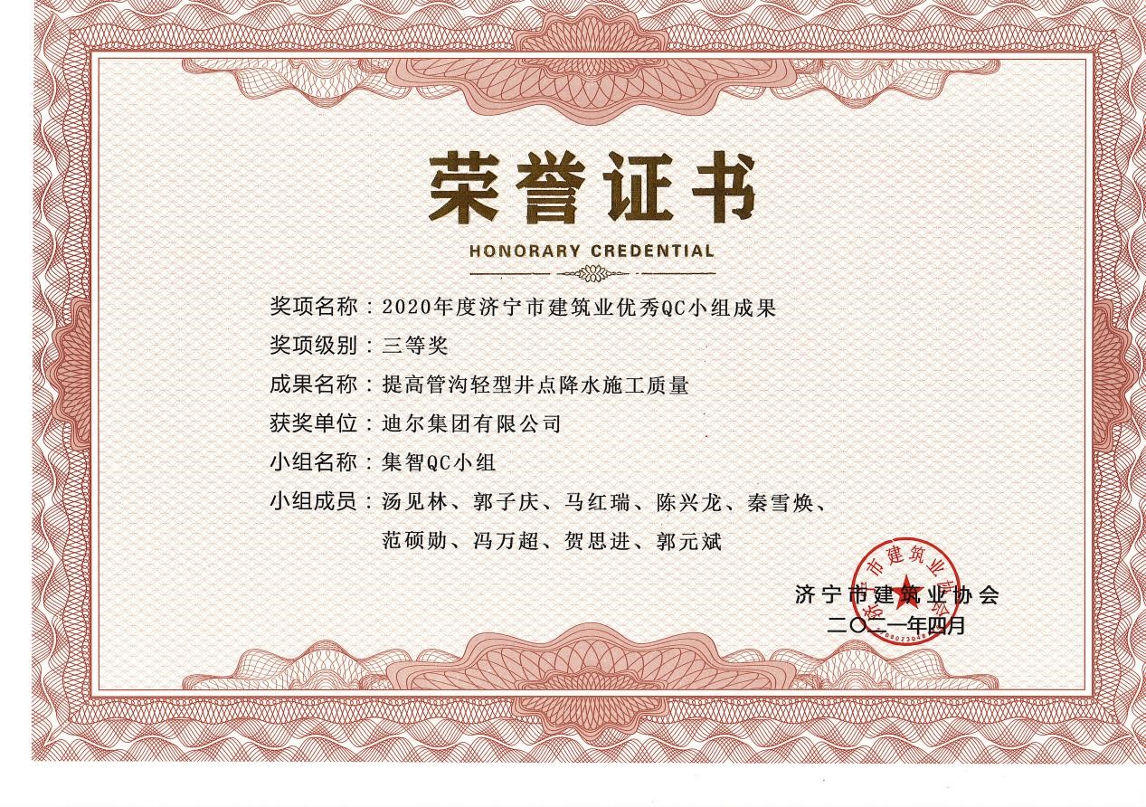 下一篇:2020年公司榮獲濟(jì)寧市建筑業(yè)優(yōu)秀QC小組活動(dòng)成果二等獎(jiǎng)
