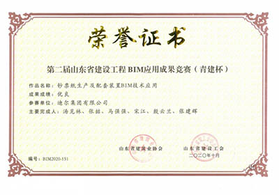 2020年10月,山東省建設工會和山東省建筑業(yè)協(xié)會舉辦了第二屆山東省建設工程BIM應用成果競賽(青建杯)活動,經(jīng)成果初評、終評答辯、競賽工作委員會審定和公示,確定76項成果為優(yōu)良成果,其中,集團申報的鈔票紙生產(chǎn)及配套裝置BIM技術應用、益大新材料針狀焦項目BIM應用榜上有名,獲得優(yōu)良成績。