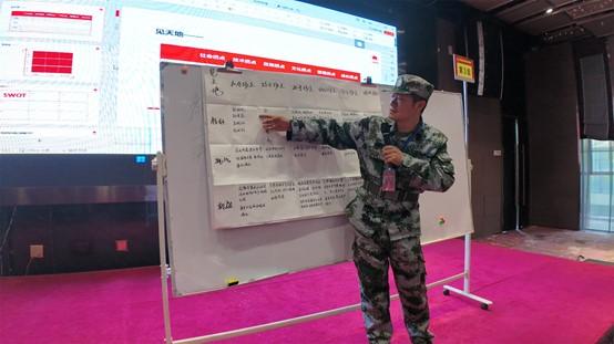接下來,王克導(dǎo)師結(jié)合分析知名企業(yè)成功案例,提綱挈領(lǐng),拋磚引玉,對(duì)學(xué)員們的認(rèn)知、心智以開悟啟迪,各個(gè)連隊(duì)針對(duì)研討營提出的“形勢研判”“價(jià)值定位”“業(yè)務(wù)鋪排”“模式設(shè)計(jì)”“系統(tǒng)行動(dòng)”“資能配置”“企業(yè)管控”等七大課題通過研討集思廣益,用心作業(yè),然后形成報(bào)告,進(jìn)行展示,以豐富多彩的形式展開競賽。每位學(xué)員在研討中不再墨守成規(guī)、因循守舊,而是放開思路、創(chuàng)新思維,不斷突破自我認(rèn)知邊界,用全新的視角去看待問題,解決問題,同時(shí)與隊(duì)友密切配合、相互補(bǔ)充,最終依靠團(tuán)隊(duì)的力量,攻克一個(gè)接一個(gè)看似艱巨的課題。每一次研討都是一次思想碰撞,每一次碰撞都伴隨著一次思維重構(gòu)。尤其在文化活動(dòng)——“鷹王重生”環(huán)節(jié),面對(duì)看似不可能完成的任務(wù),大家一次次克服畏難情緒,經(jīng)受住信念、毅力和體能的多重考驗(yàn),即使累得滿頭大汗、胳膊疼麻,也咬牙堅(jiān)持,自我鼓勁,不言放棄,可謂經(jīng)歷了一場身心的洗禮與覺醒。面臨生死抉擇,選擇生,就必須拋舊納新,自我蛻變,經(jīng)歷疼痛;企業(yè)重構(gòu)建歸根結(jié)底始于人的重構(gòu)建,始于個(gè)人的自我打破和蛻變;蛻變是艱難而痛苦的,但只有經(jīng)過蛻變的陣痛,個(gè)人、團(tuán)隊(duì)乃至企業(yè)才能獲得重生。